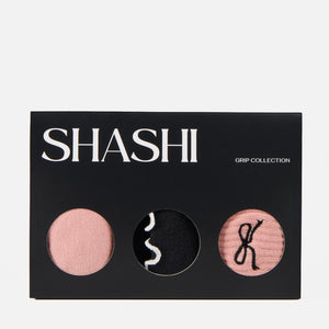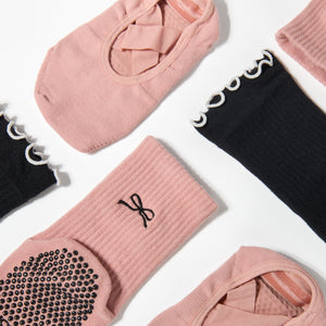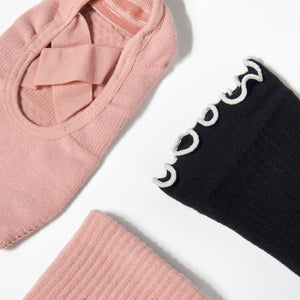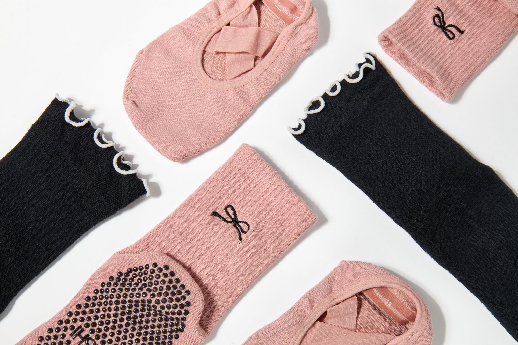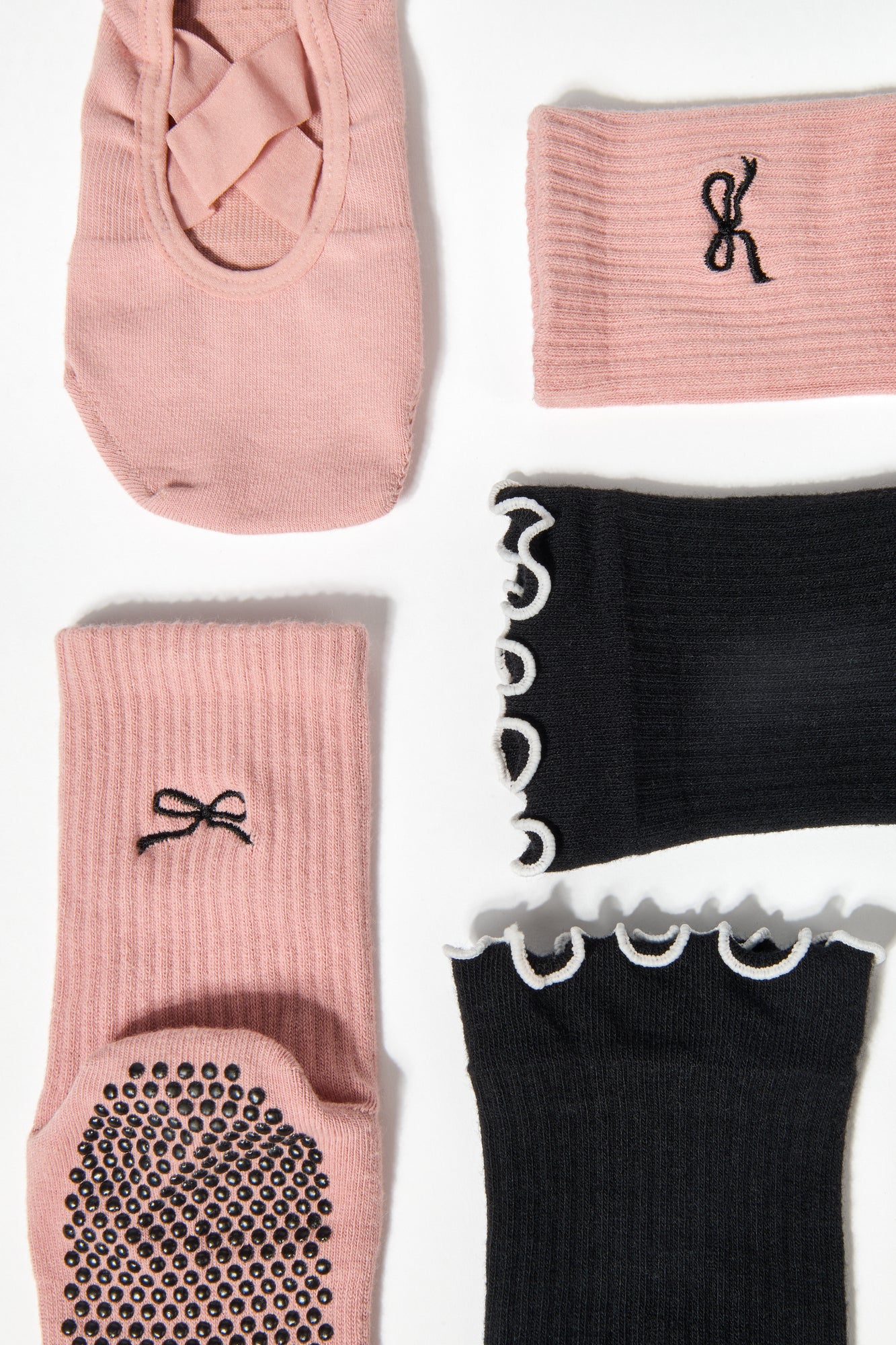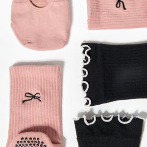 Elevate your everyday with The Pilates Set—a curated trio of SHASHI’s signature grip socks, designed for a barely-there feel and graceful performance. Featuring three solid styles adorned with feminine ribbon-inspired details, this pack adds a touch of elegance to every routine. With full slip-resistant coverage and chic, standout design, these socks move beautifully through Pilates, barre, yoga, or dance. Strength, style, and support—wrapped up in one perfect set.