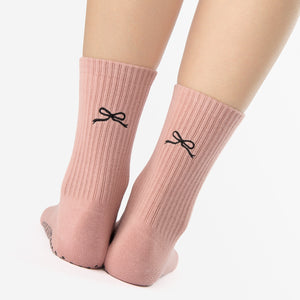 Refine your routine with the Motif Grip Ankle—a sleek ribbed sock featuring delicate embroidered ribbon detailing. Combining timeless elegance with modern performance, these socks offer a full-coverage grip for unmatched stability and support. This style embodies understated luxury and is perfect for elevating your workout and studio-to-street style.